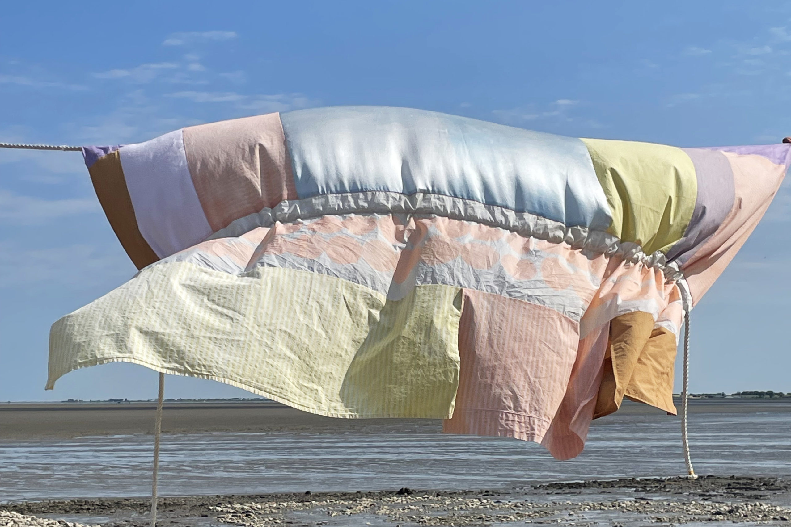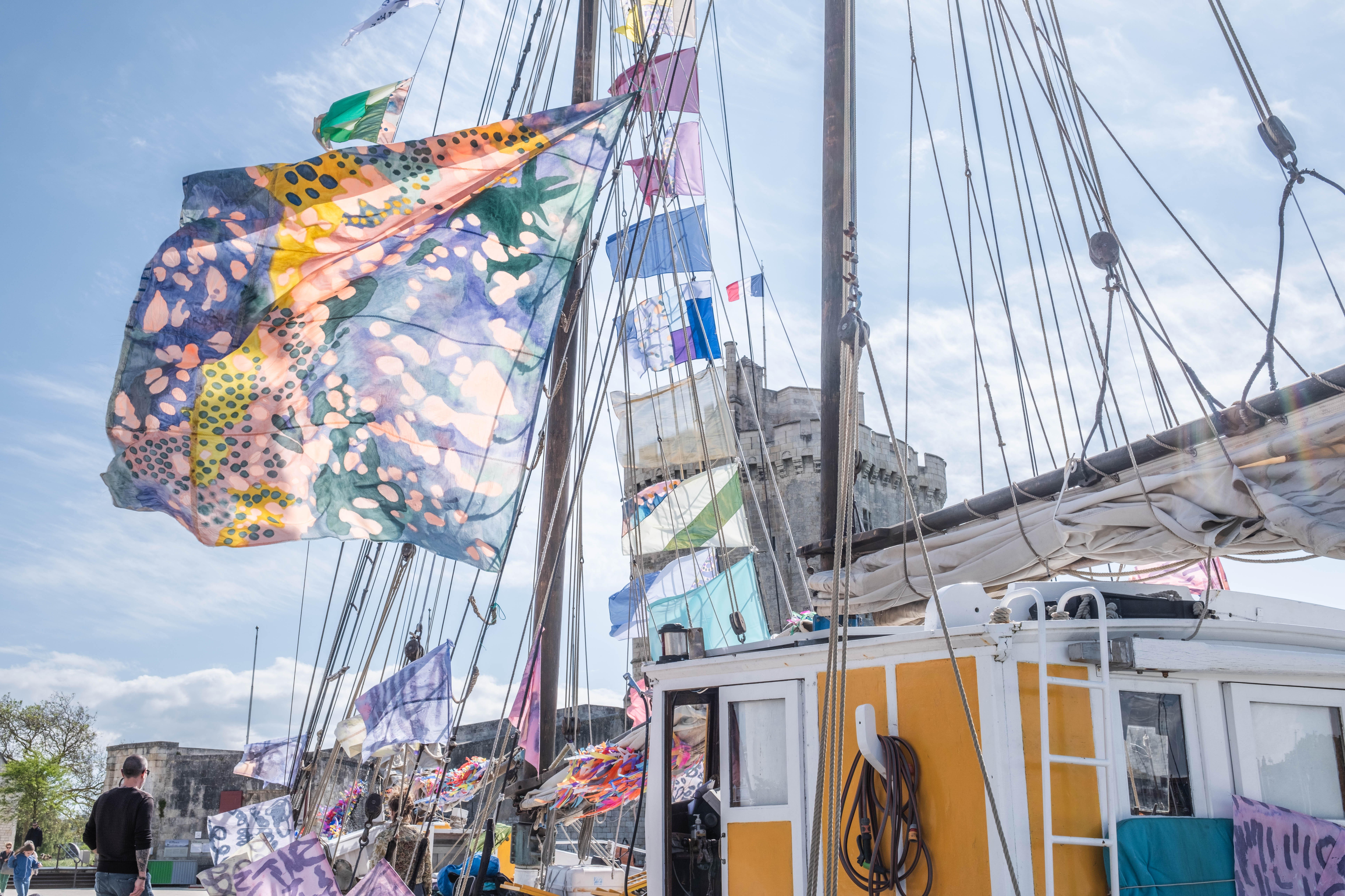 Dans un travail construit autour d’une approche sur mesure elle navigue du corps à l’espace : scénographie, peintures, installations, voiles de bateau, photographies... avec l’intention de décloisonner les mondes et de porter un regard tendre sur le monde.