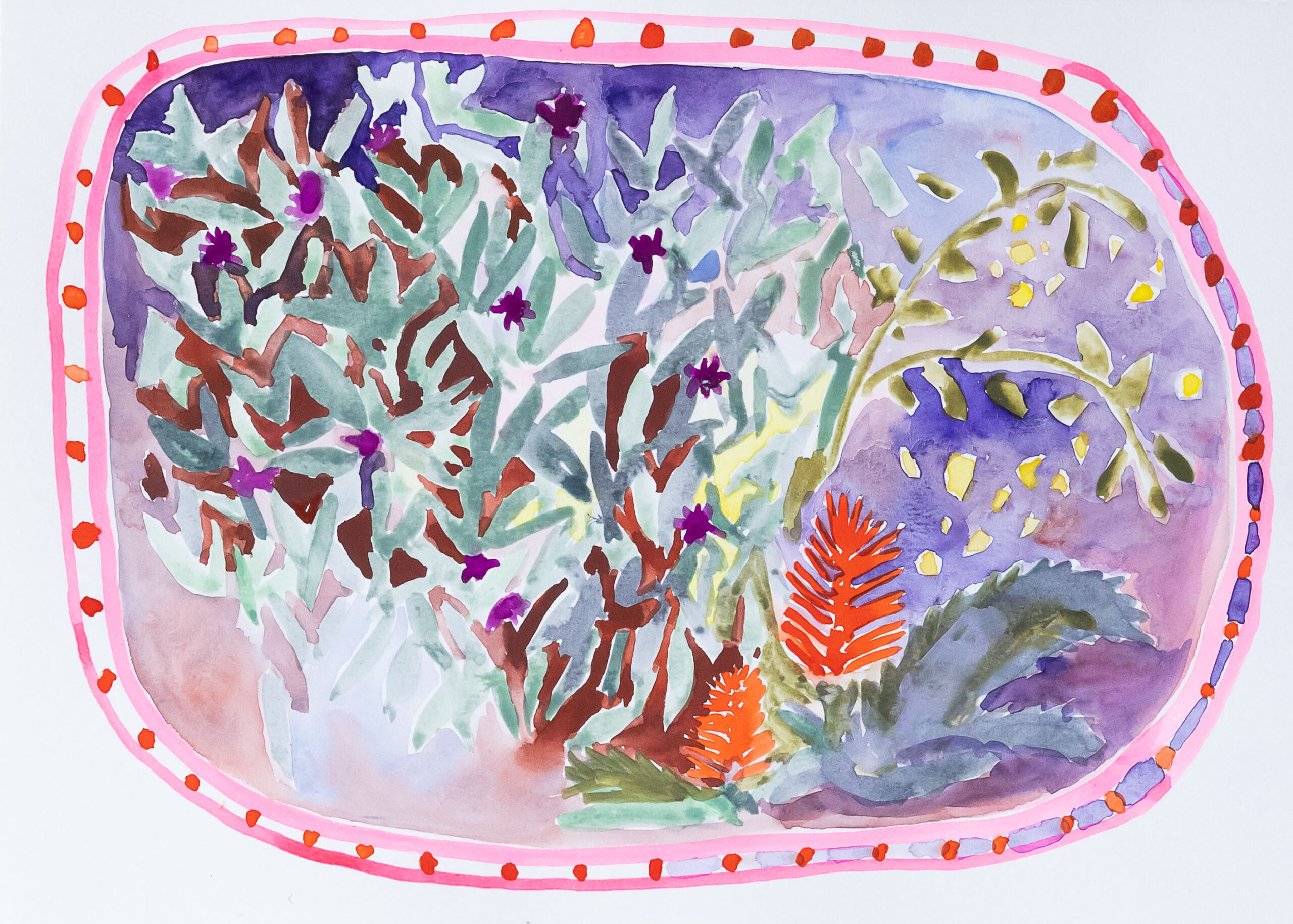 « Sa pratique artistique questionne la couleur, la mise en espace et le végétal avec une écriture colorée singulière.